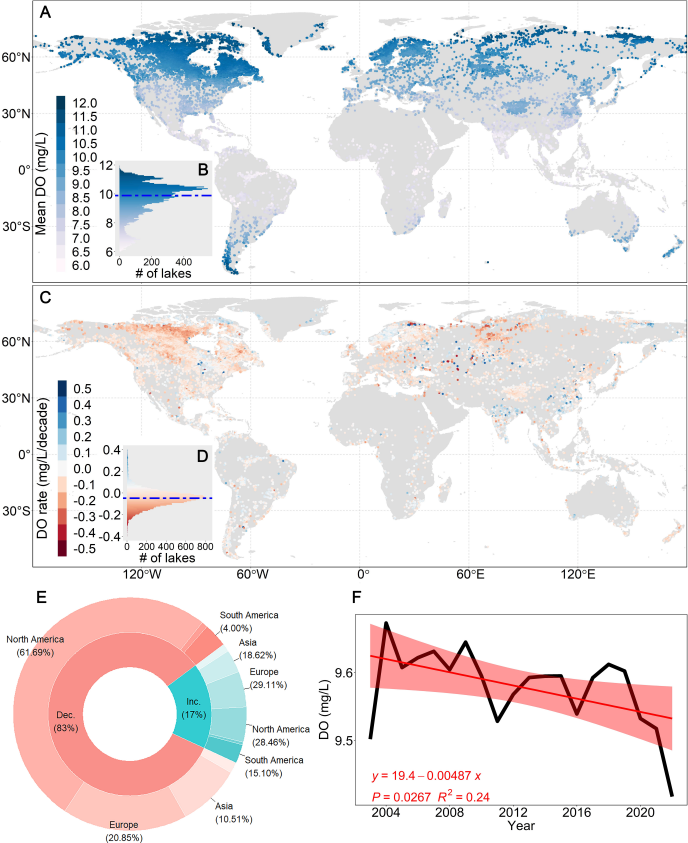 Freshwater ecosystems require adequate oxygen levels to sustain aerobic life and maintain healthy biological communities. However, both long-term climate warming and the increasing frequency and intensity of short-term heatwaves are significantly reducing surface dissolved oxygen (DO) levels in lakes worldwide, according to a new study published in Science Advances.Led by Prof. SHI Kun and Prof. ZHANG Yunlin from the Nanjing Institute of Geography and Limnology of the Chinese Academy of Sciences, in collaboration with researchers from the Nanjing University and the UK’s Bangor University, the study quantifies the effects of continuous climate warming and intensified heatwave events on surface DO levels in lakes worldwide. The research team utilized an extensive dataset and applied a data-driven model to analyze surface DO variations across more than 15,000 lakes over the past two decades.The study reveals a widespread decline in surface DO concentrations, with 83% of the studied lakes exhibiting significant deoxygenation. Notably, the average rate of deoxygenation in lakes exceeds that of both oceans and rivers, highlighting the severity of this issue.The researchers further explored the roles of climate warming and eutrophication in shaping surface DO concentrations. Their findings indicate that climate warming, by reducing oxygen solubility, contributes to 55% of global surface deoxygenation. Meanwhile, increasing eutrophication accounts for approximately 10% of the total global surface oxygen loss.Historical trends in heatwaves were also analyzed, with their impacts on surface DO levels quantitatively assessed. The study shows that heatwaves exert rapid and pronounced effects on surface DO decline, resulting in a 7.7% reduction in surface DO compared to conditions under average climatological temperatures.These findings underscore the profound impact of climate change on freshwater ecosystems, emphasizing the urgent need for mitigation and adaptation strategies to preserve lake ecosystems worldwide. The study provides crucial insights for policymakers and environmental managers working to combat the escalating threat of freshwater deoxygenation.